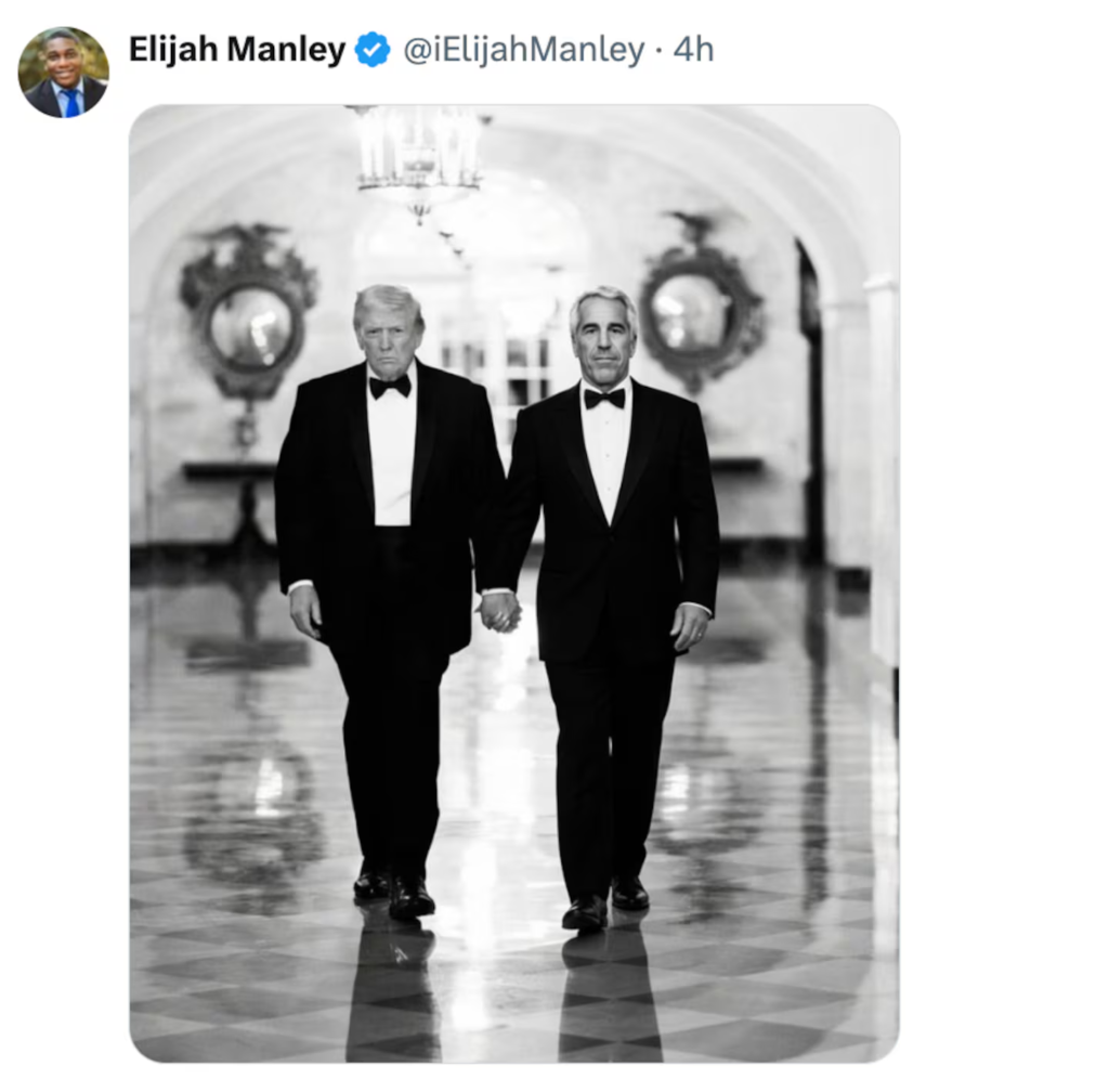 One widely shared post featured a doctored image of Trump sitting across from Epstein at a candlelit dinner, the two men exchanging glances. The caption, written in bright pink letters, read: “Pedophile Valentine’s Day.” The post garnered thousands of likes within hours.