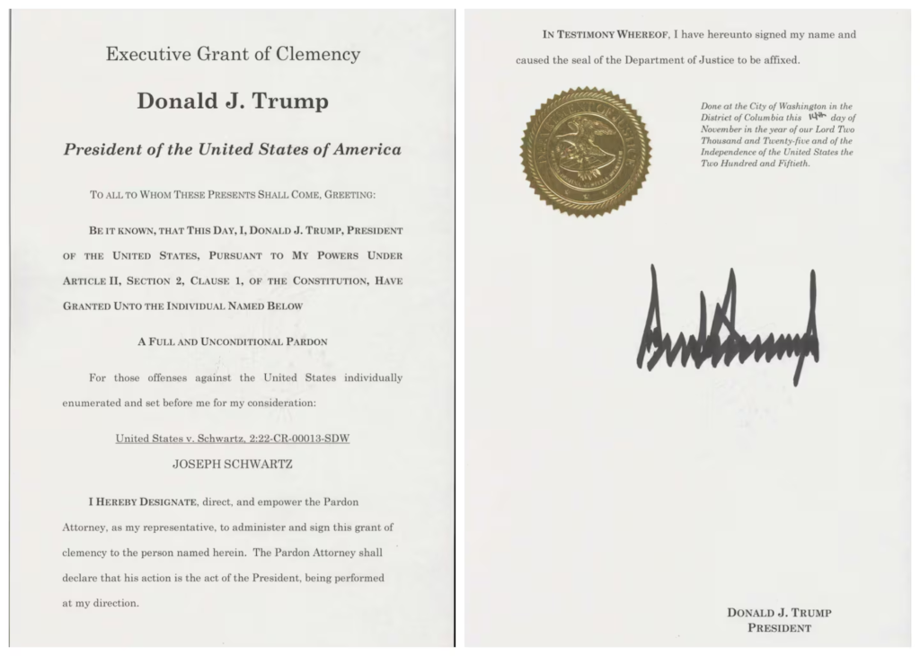 The New York Times had previously cited the pardon granted to Schwartz as a sign of the rise of a “pay-for-pardons industry.”