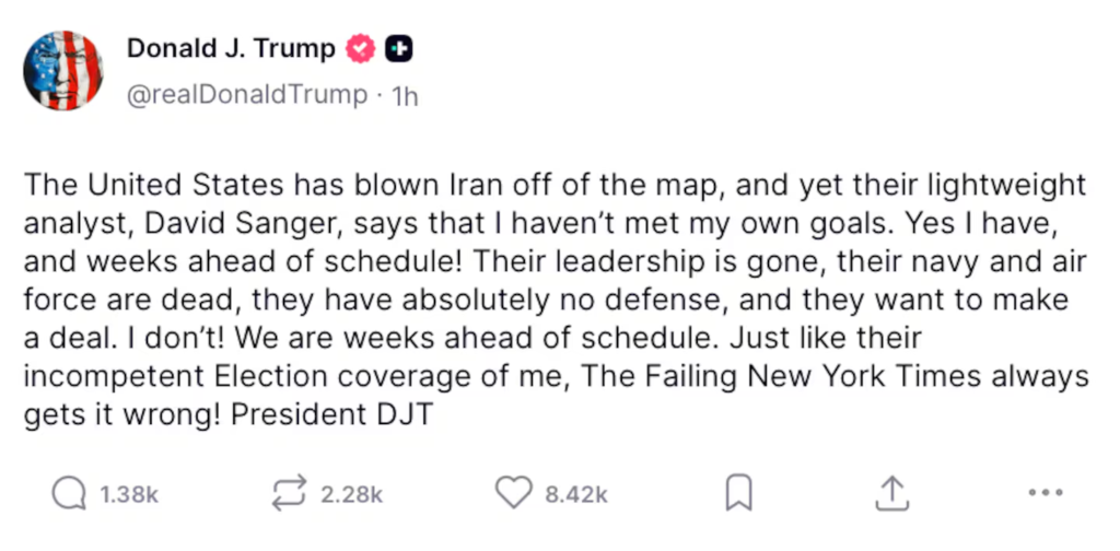 The President first launched a scathing attack via the “Truth Social” platform at 6:37 p.m. (Eastern Time), following the publication of an analysis by The New York Times that questioned how close Trump actually was to achieving his stated objectives regarding military operations against Iran.